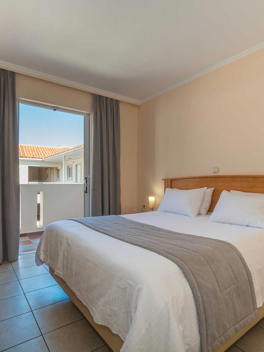 +30 26950 24024Opening to one big balcony with side Ionian Sea view, this air-conditioned, ground-floor apartment is fitted with Coco Mat pillows and mattresses and has a fully equipped kitchen with dining area. Free toiletries Zealots of Nature and a TV are provided. This apartment is suitable configure for people with dissability, eqquied with widder doors, and grab rails in the bathroom.